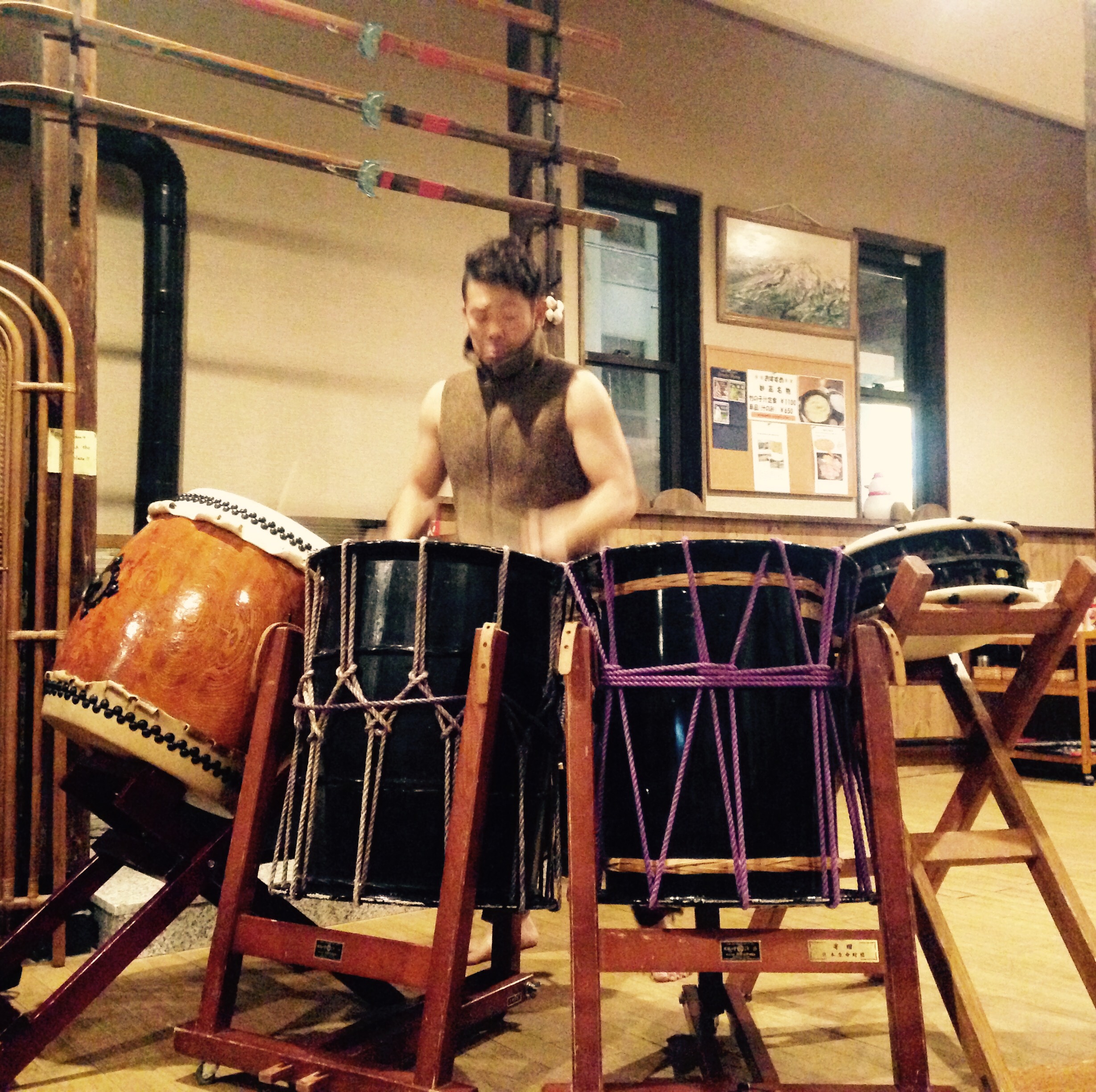 Late night onsen’s underneath the waning full moon. Laughter and love with those around me. Breathless views and continued awe. Beer yummy nights playing Jenga with strangers at a bar and racing in the snow. Going to see a Japanese drummer in a small restaurant space. Watching his eyes, his mouth, his arms and lips. Thinking of how much practice goes into moments like these. Taking in the way he goes somewhere else when he plays. It’s almost as if he becomes so present he becomes lost to another world. I remember living with five Argentinian musicians in Bolivia, the jam sessions they’d have at night, the way they’d wrap their sore and bleeding fingers in tape and pound on, moving beyond the feeling of pain. I’d look at Jackie and smile. Be a witness. We’d watch their eyes and their soul go somewhere else, and yet be absolutely nowhere else but Here.